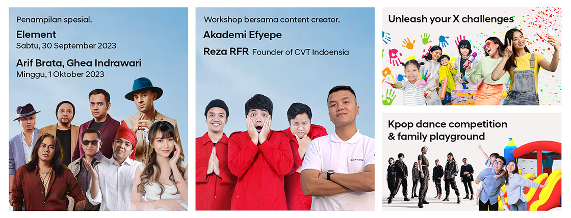 Di sini, pengunjung bisa mengikuti Unleash Your X Challenge bersama keluarga dan teman untuk mengeksplorasi faktor X masing-masing dalam mengekspresikan diri hingga berkreasi. Lalu, ada juga Unleash the X in You Talkshow bersama Arif Brata yang akan memberikan inspirasi dalam berkarya dan menuangkan passion.